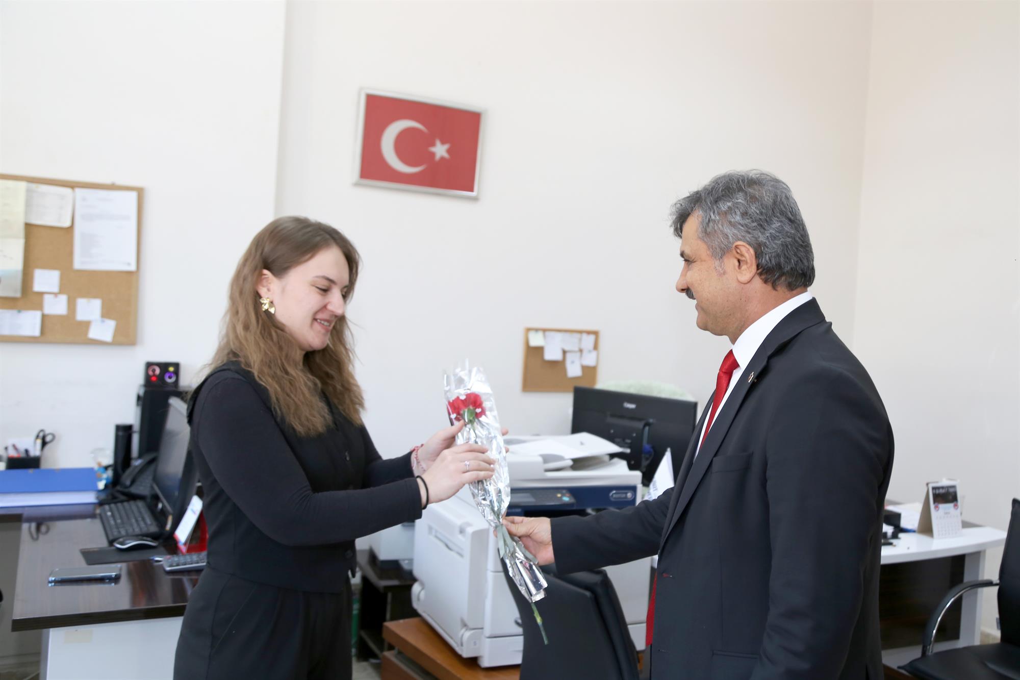 Rektörümüz Prof. Dr. Nihat Şındak, “8 Mart Dünya Kadınlar Günü” dolayısıyla anlamlı bir jest gerçekleştirerek rektörlük bünyesindeki birimlerde görev yapan kadın personelimize kırmızı karanfil dağıttı.